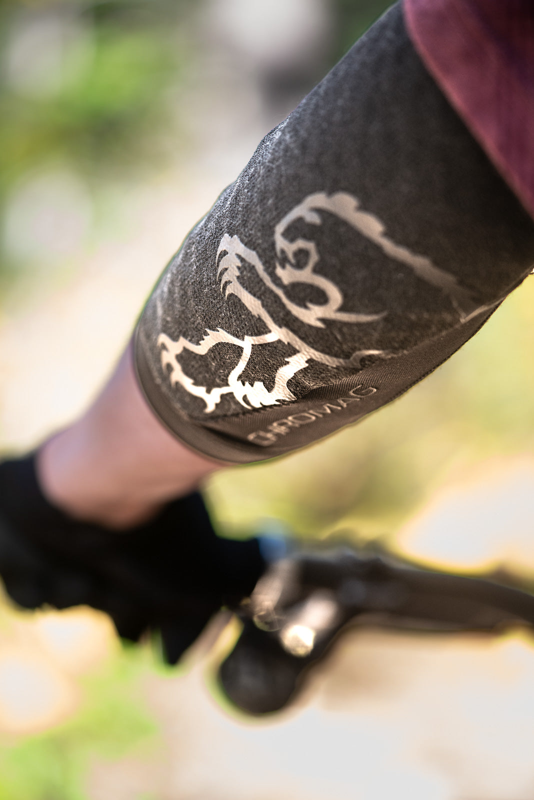 Up top, a wide segmented silicone grip cuff replaces traditional solid silicone bands. Short vertical grip lines spread traction over a larger surface area, helping the pad stay in place without constricting, pulling at the skin, or trapping moisture. The result is a secure, comfortable fit that holds through long rides and repeated movement.